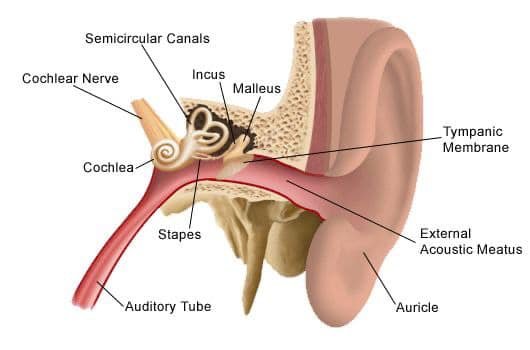 - Eardrum (Tympanic Membrane) – Vibrates when sound hits it